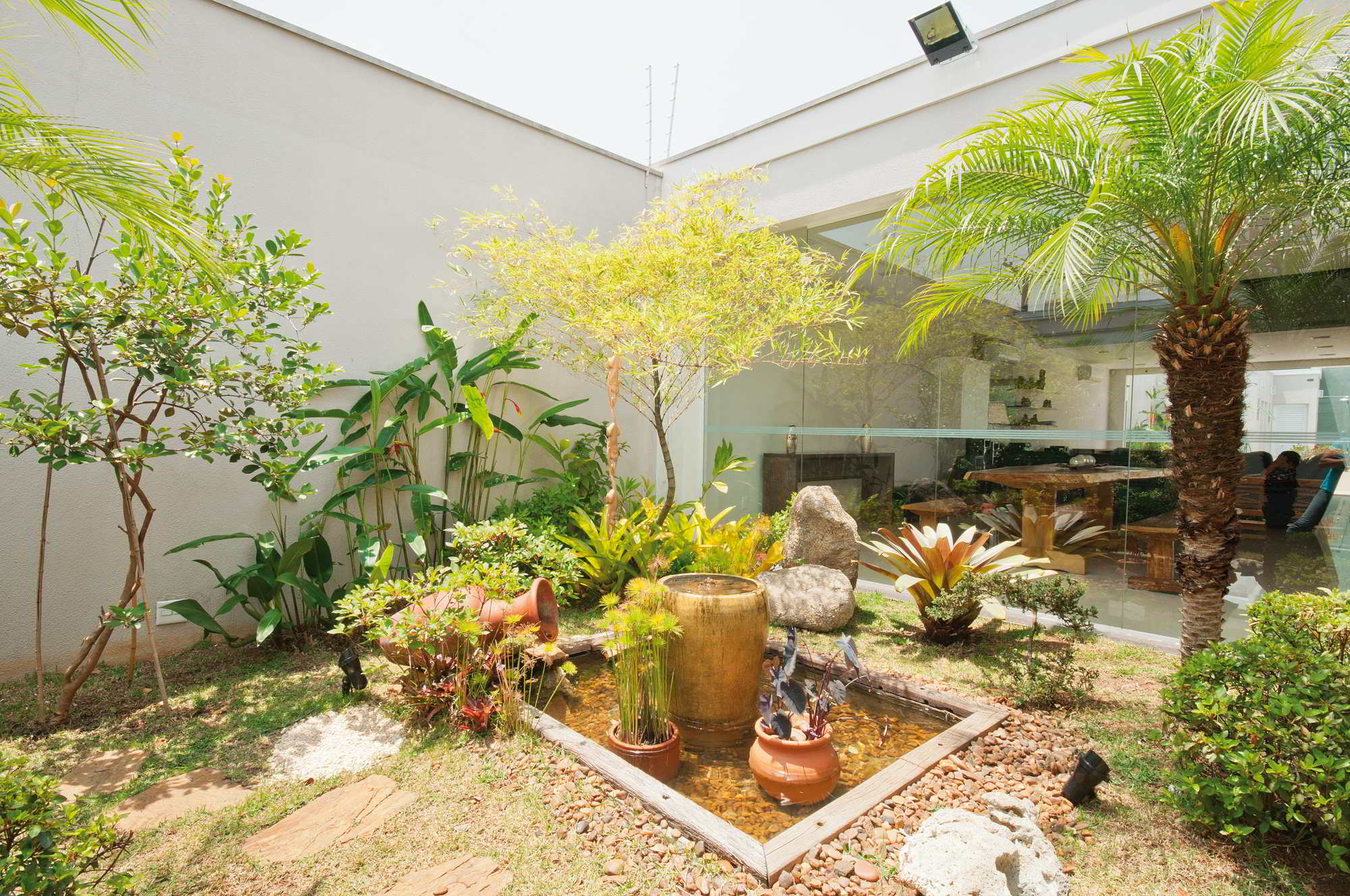 Quando as áreas sociais externas da casa ficam separadas umas das outras, o jardim torna-se um grande aliado na hora de integrar esses espaços. Nesse projeto da paisagista Ivani Kubo, unir visualmente os diferentes ambientes de convivência era o principal desafio, mas não o único: também era necessário…
