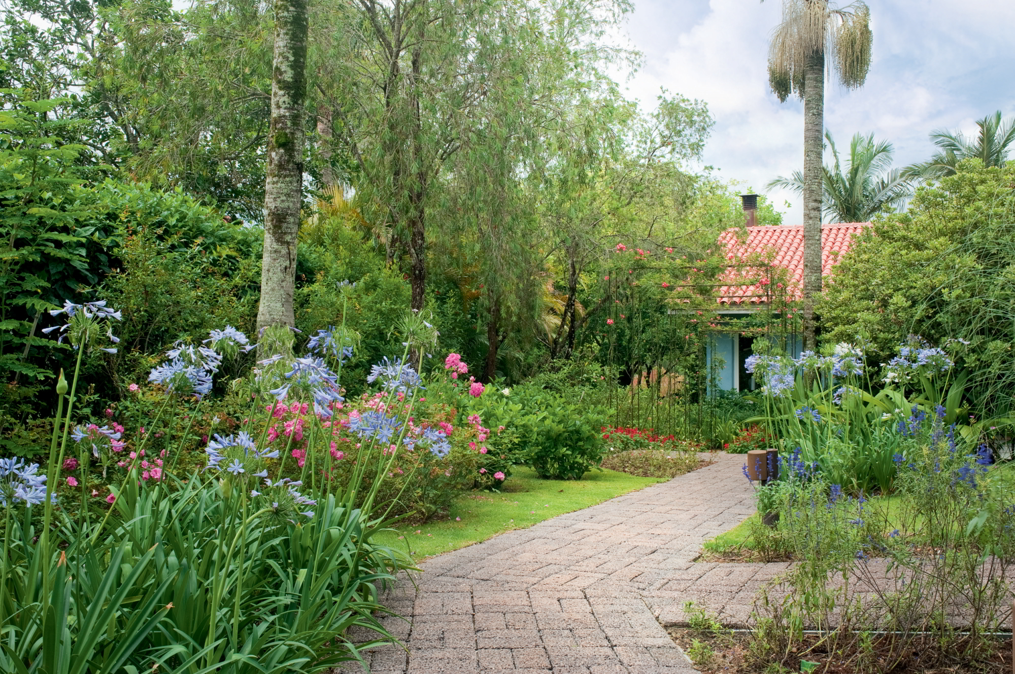 Os proprietários da casa queriam um jardim campestre com muitas flores, mas que mantivesse as árvores já existentes no local. A partir dessa diretriz, o arquiteto paisagista Alex Hanazaki caprichou nos caminhos ladeados de canteiros que oferecem cores e aromas diferentes. “É um jardim sensorial, pensado para…