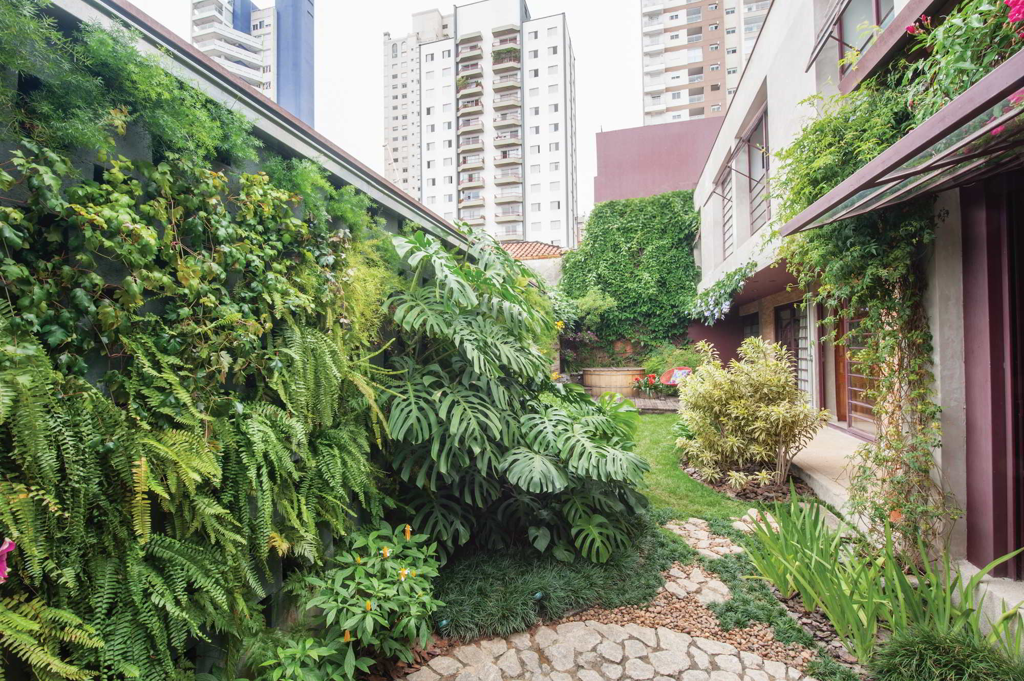 Construída na década de 1950, a casa no bairro Sumaré, na zona oeste de São Paulo, tinha um quintal de 55 m² coberto por piso cerâmico, como era costume na época. Mas, graças à intervenção do arquiteto Fabio Marins, ela ganhou um jardim repleto de plantas, que mais parece um pedacinho de Mata Atlântica escondido no meio da cidade…
