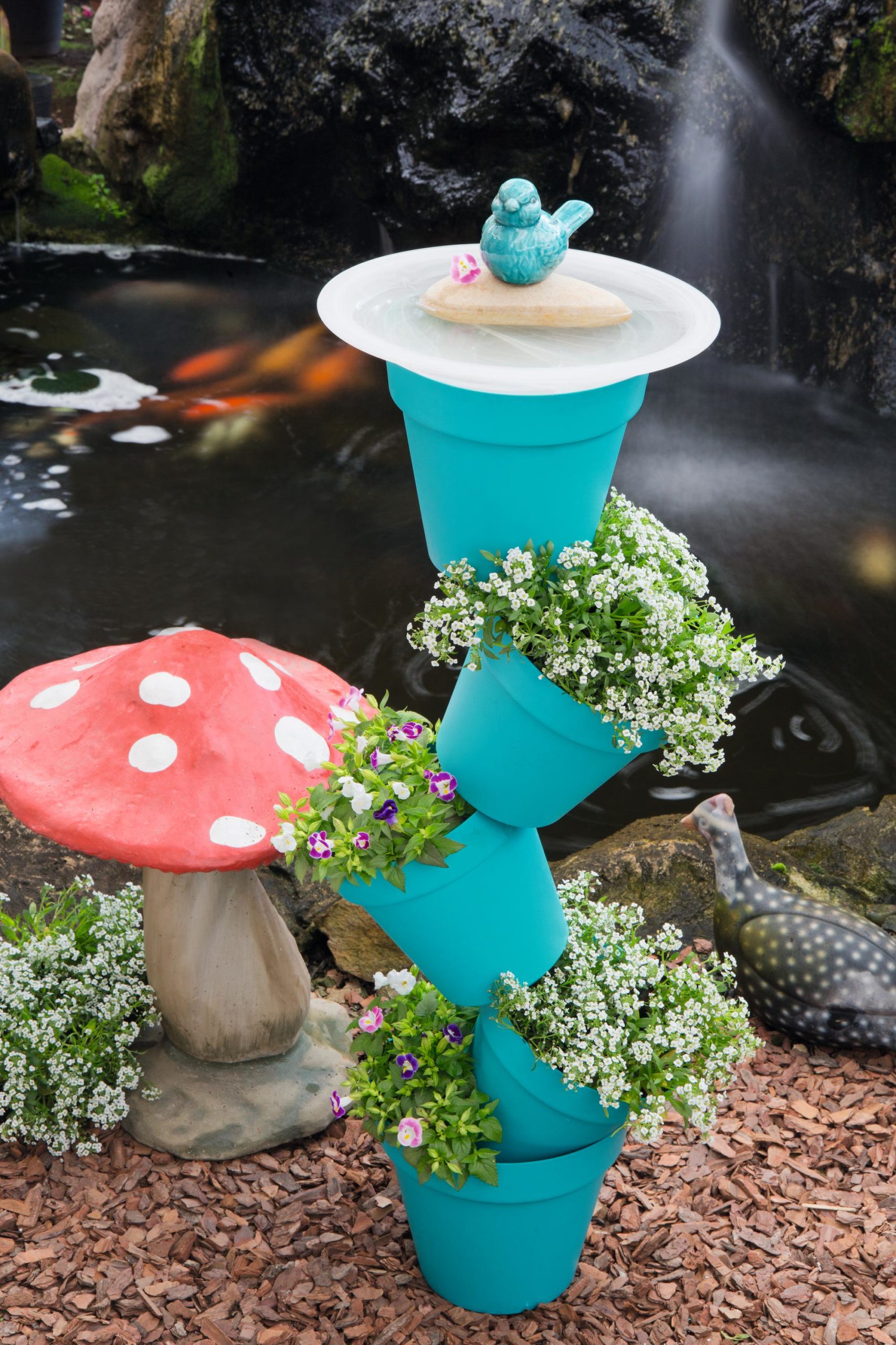 Bastam alguns vasos, uma barra de aço e flores para você criar uma peça decorativa para seu jardim — Texto […]