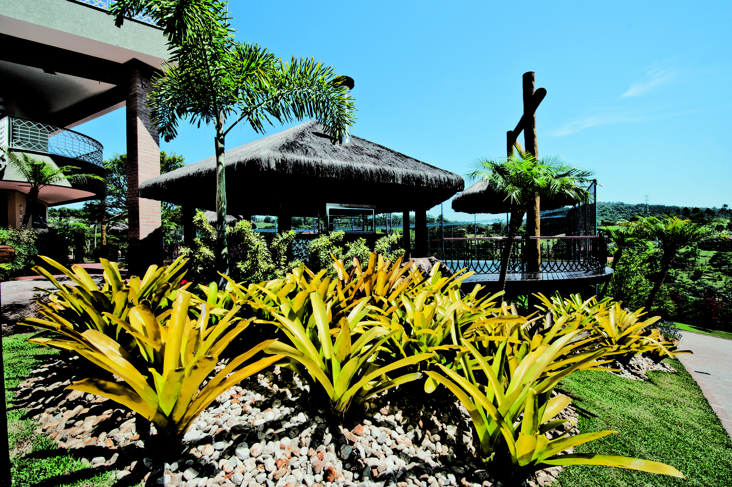 Espécies tropicais e maciços floridos dão o tom desse belo paisagismo