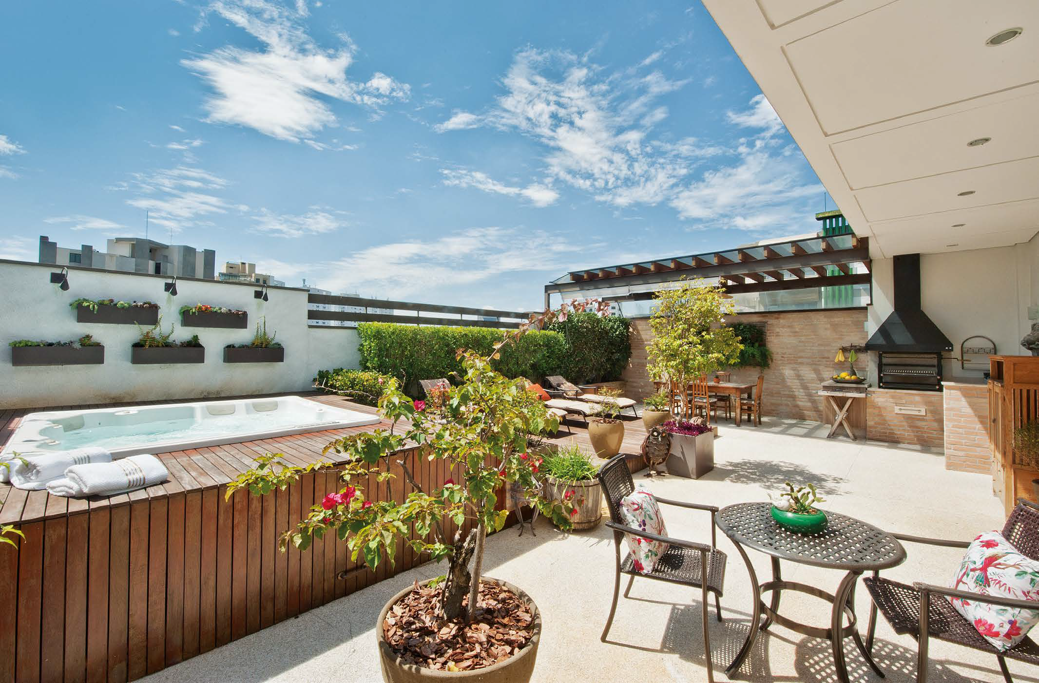 Rústica e ao mesmo tempo sofisticada, a cobertura tem atrações capazes de garantir o lazer em qualquer época