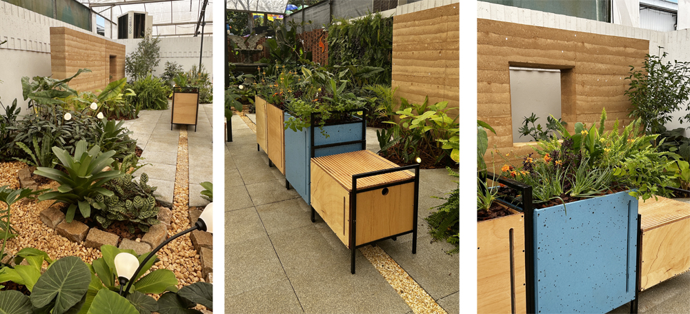 Com plantas nativas brasileiras, piso drenante e materiais reciclados, o projeto demonstra como o paisagismo pode ser sensível à água, aproveitando recursos naturais e reduzindo impactos ambientais. O pátio transforma a técnica ancestral da taipa de pilão em elemento construtivo do paisagismo e aplica conceitos de drenagem urbana sensível, permitindo o reaproveitamento da água em canteiros, jardins de chuva e floreiras modulares em alumínio e plástico reciclável, que se tornam autoirrigáveis. O ambiente inspira os visitantes a repensar a integração com a natureza e a consciência ecológica no planejamento de espaços urbanos e residenciais.