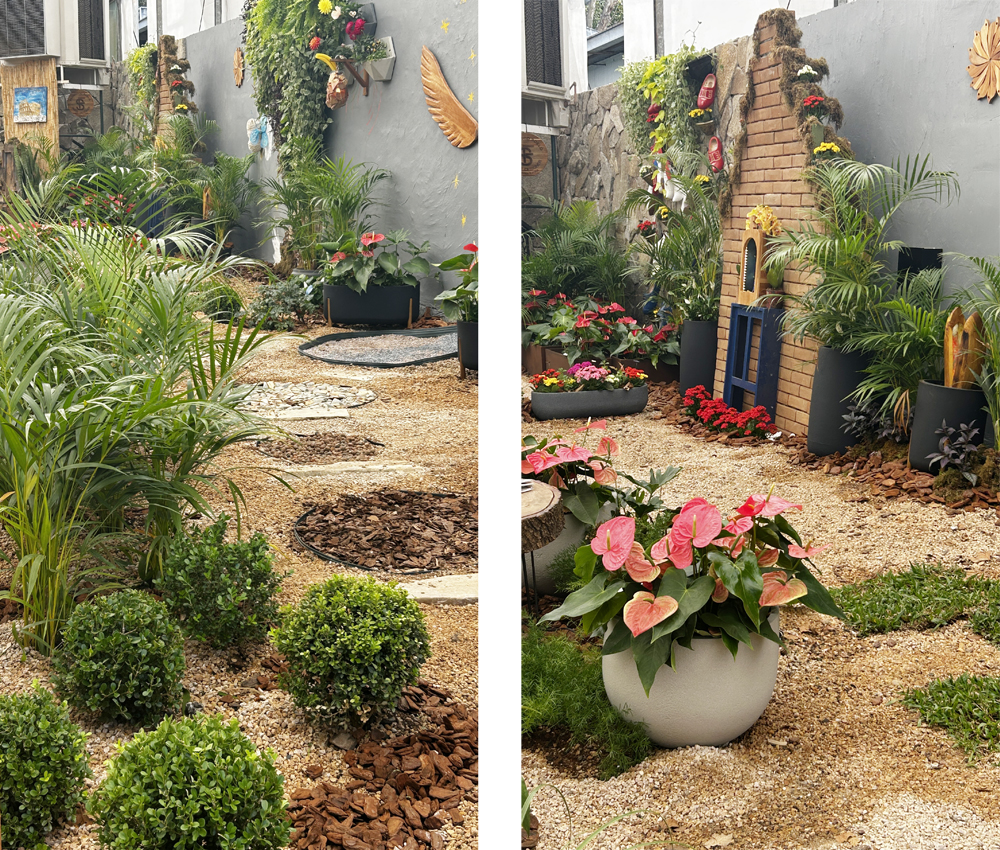 A proposta incentiva o visitante a criar cenários coloridos, combinando espécies perenes com flores anuais em vasos, além de reutilizar materiais e explorar detalhes decorativos. Muitas das plantas utilizadas têm ciclo curto, o que torna a ideia ideal para compor espaços temporários, como festas ou momentos comemorativos.